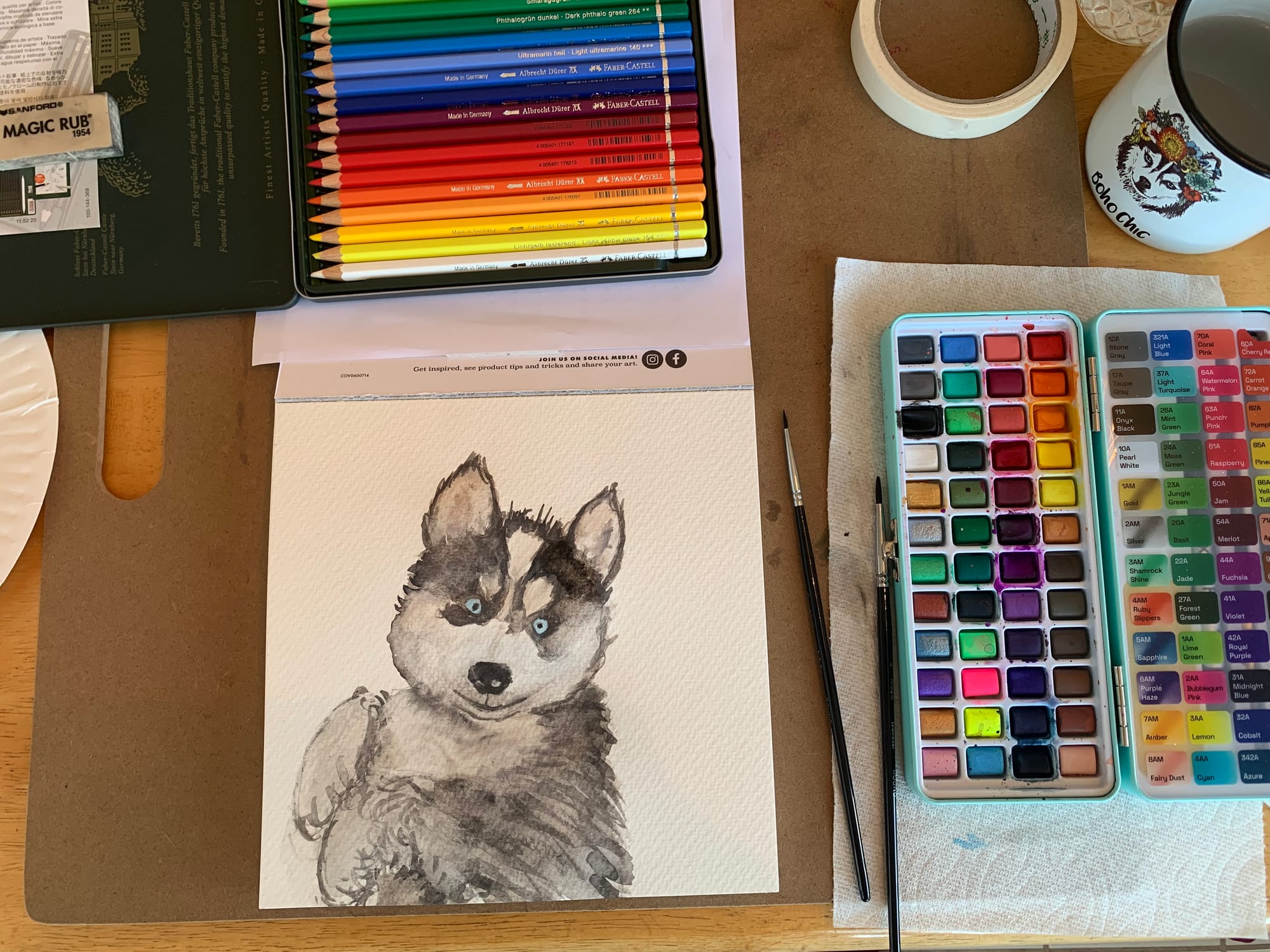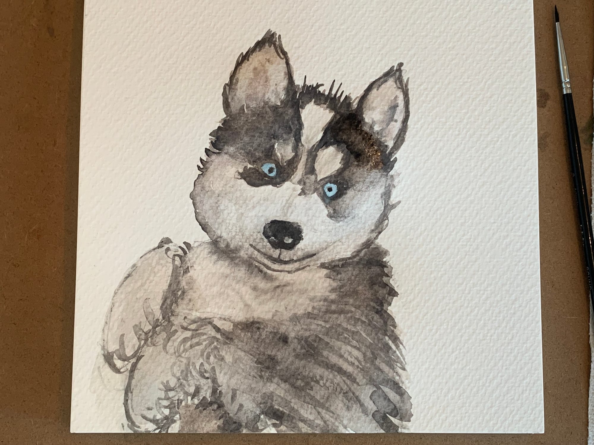 The beginning of my SoulDog Journey Project - painting a portrait of Kerouac as a puppy.