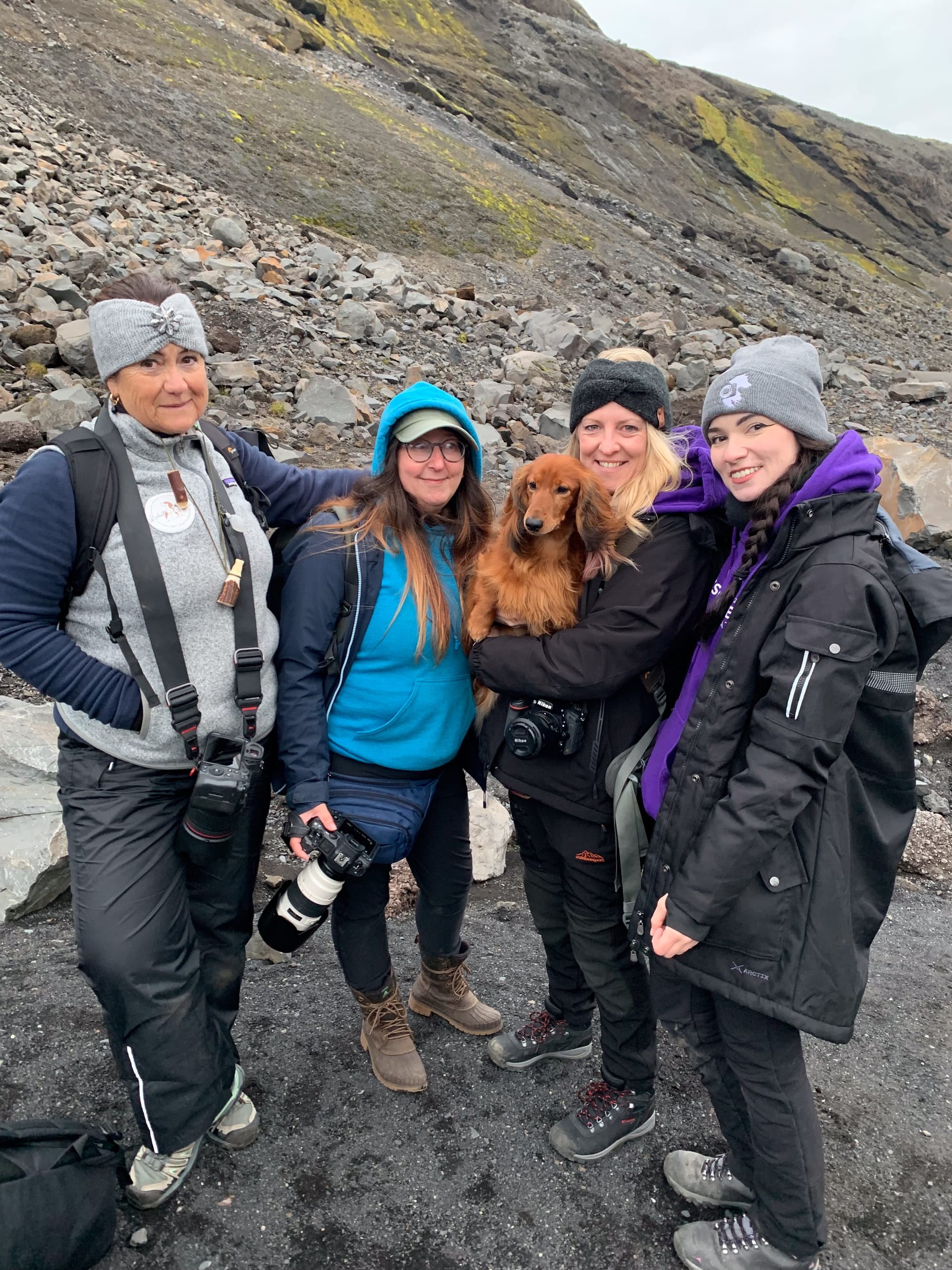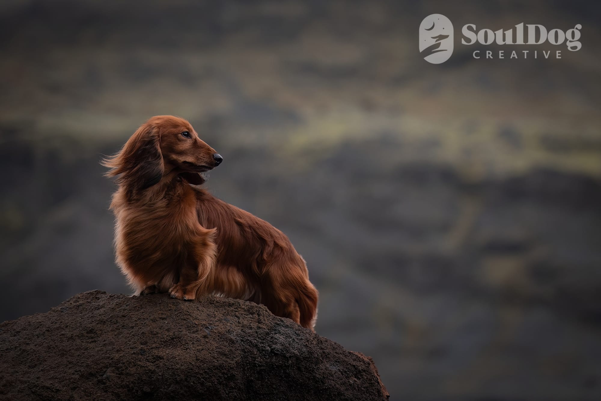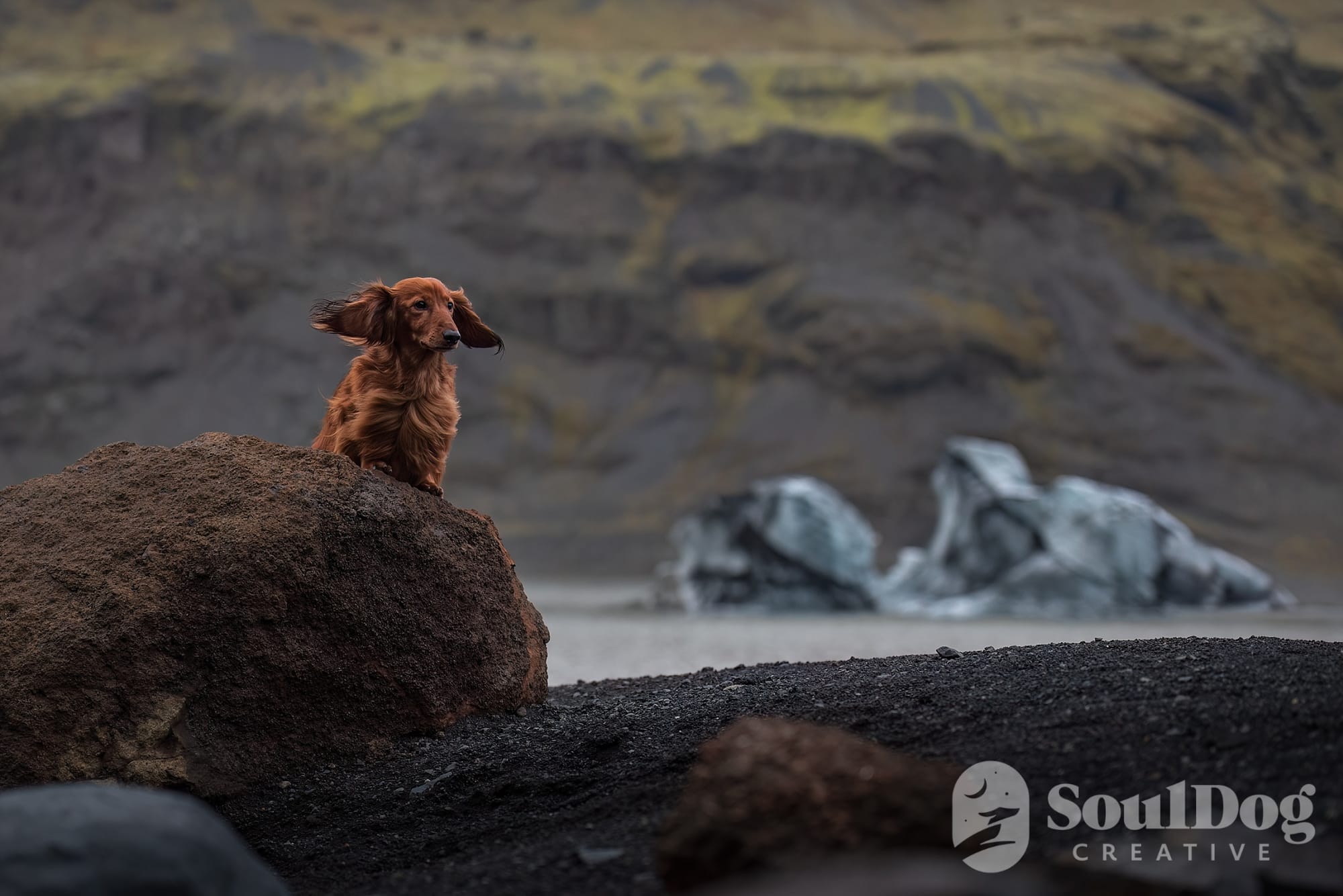 Bassi, a standard longhaired dachschund, had the best hair for the windy evening by the glacier.