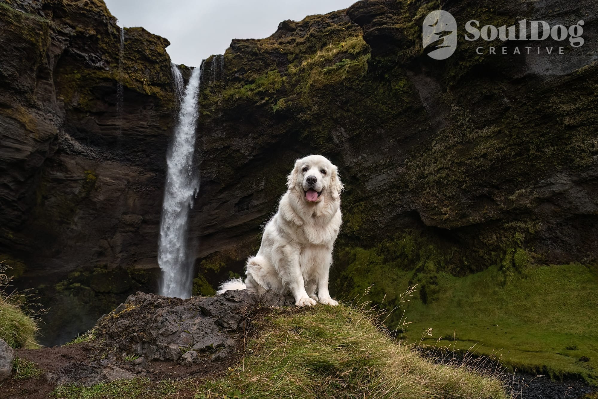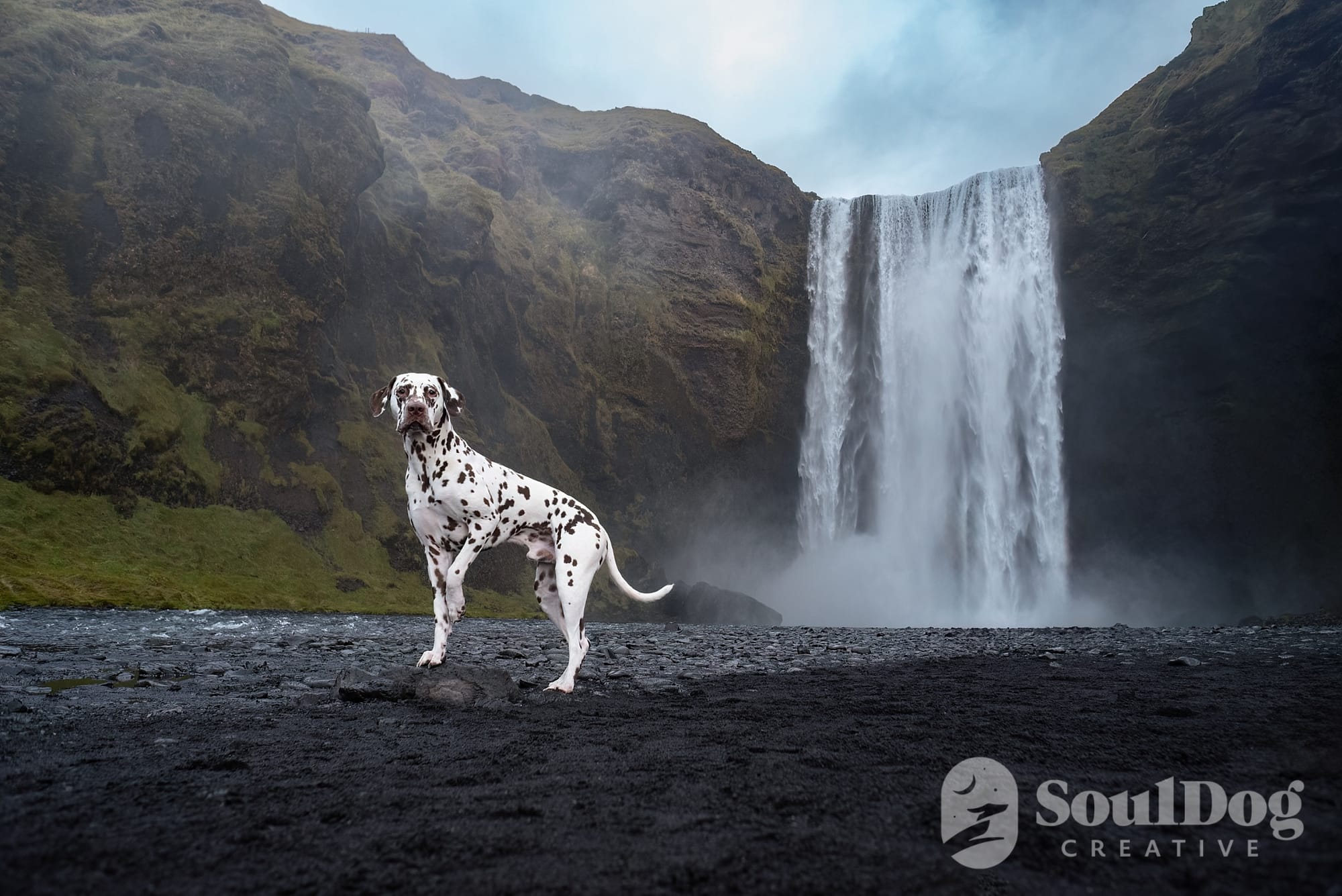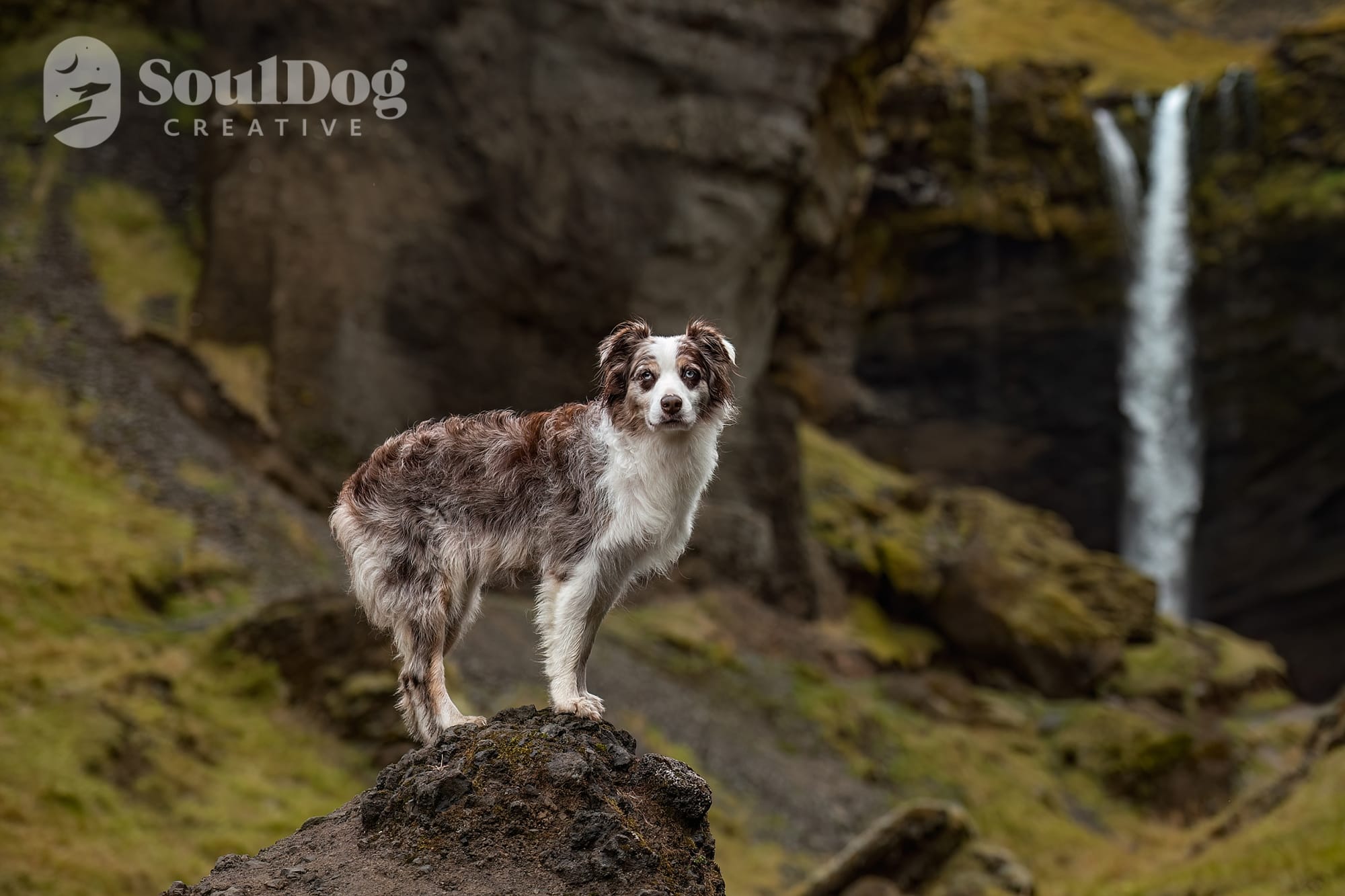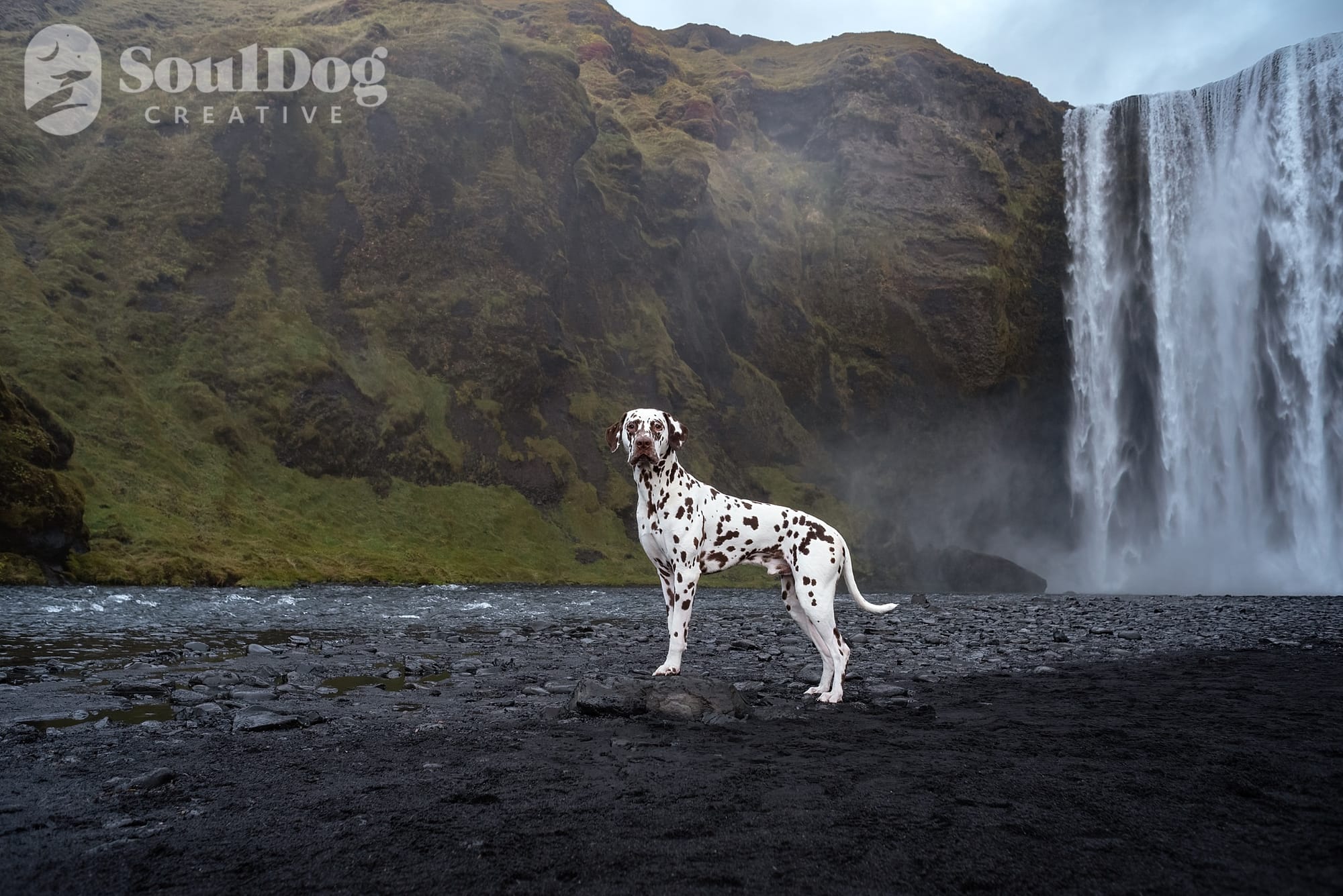 Our second session for Style Lab began before sunrise at Skógafoss where I got to photograph King Baltasar Owen (a Dalmation). We spent most of the morning at our next location, Kvernufoss, where I photographed Bella and Skipper (both Polish Tatra Shepherd dogs), followed by Nessi (Australian Shepherd), and Luna (border collie).
